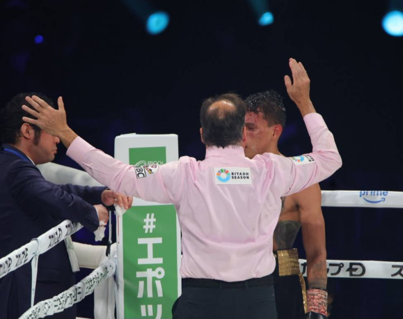 試合ストップ、TKO決着で寺地の勝利となった(24年10月)