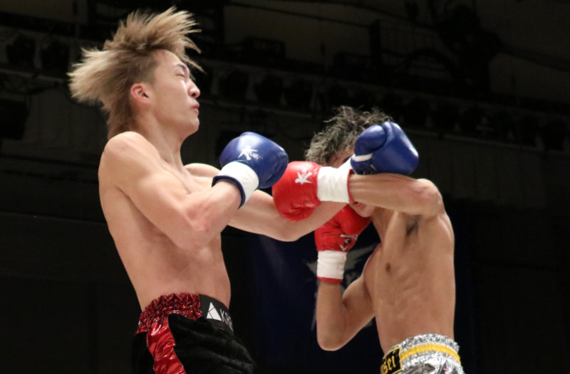 左のパンチを放つ吉川
