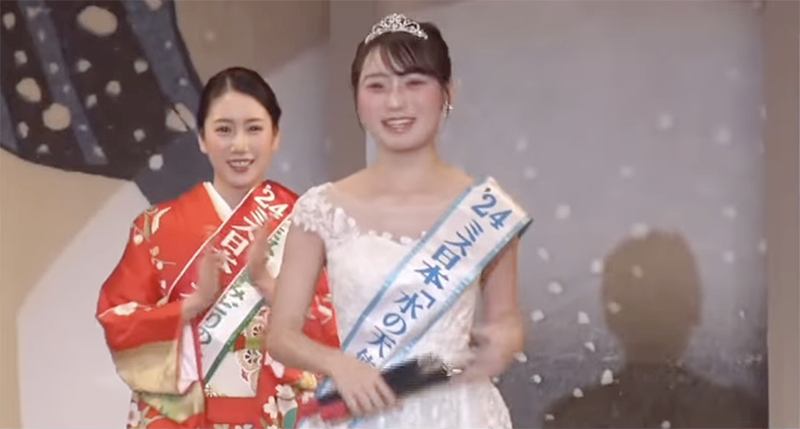 ヌンチャクを持つミス日本・水の天使の安井南。一年間の任期に足跡残した(ミス日本公式YouTube)