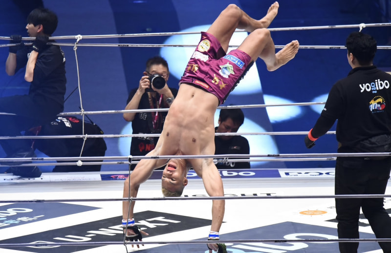 KO勝利に歓喜して回転する身軽なところを見せたエドポロキング