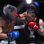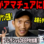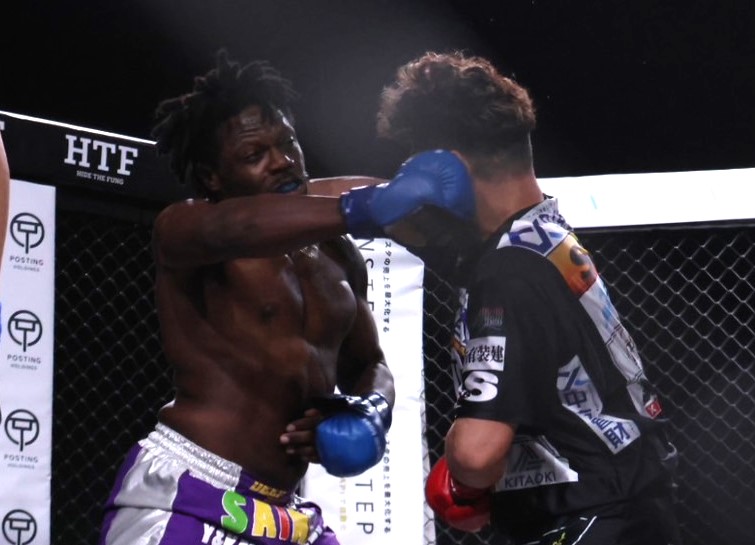 BDの金田一(右)とパンチで打ち合うDEEPのSAINT(左)