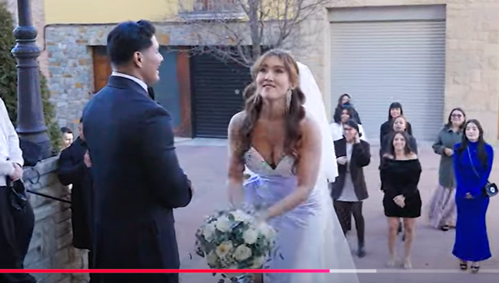 ブーケトスでAZUSAは、思い切り投げてしまい参加者の後方へ(『AZUSA』YouTubeチャンネル)