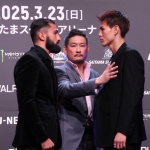フェイスオフで睨み合う海人(右)とグレゴリアン(左)