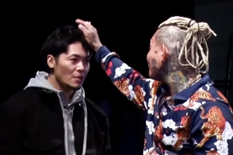 SATORUが飯田の頭をポンポン叩き、試合を約束した(朝倉未来YouTubeより)