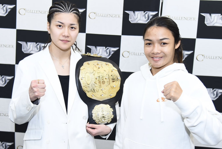 K-1のベルトを持つ☆SAHO☆(左)と、今回の相手ダンコンファー (右)