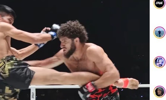 ナバティ相手の蹴り足をキャッチ、反撃へ(@onechampionship より)