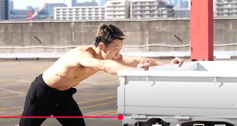軽トラックを押して鍛える小田(『ABEMA格闘』YouTubeチャンネル)