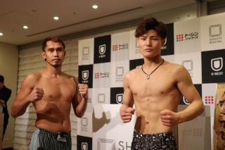 2月8日(土)東京・後楽園ホールで開催される格闘技イベント『SHOOT BOXING 2025 act.1』の前日計量が7日に行われた。メインイベント[59.0kg契約エキスパートクラスルール]で対戦する、SB日本フェザー級王者の山田彪太朗(シーザージム)が59.00kg、ルエル・カタラン(フィリピン)が58.75kgで共に計量をパスした。彪太朗は仕上がったシックスパックの腹筋で登場し、カタランと視線をぶつけた。