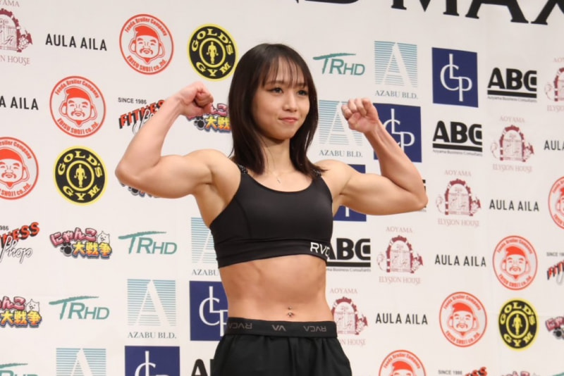 優勝候補・松谷綺、自慢の上腕二頭筋で計量パス