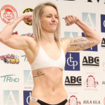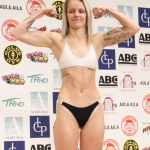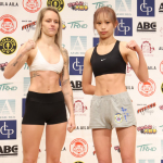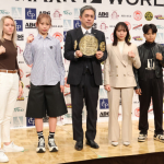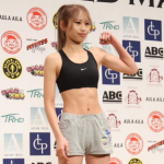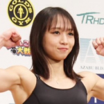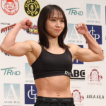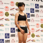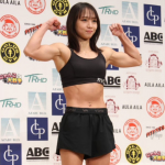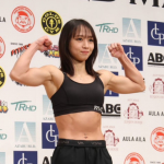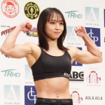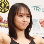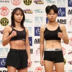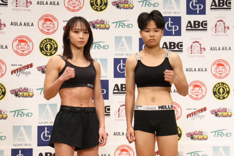 対戦相手と並ぶ松谷(左)