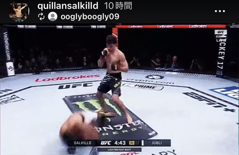 UFCデビュー戦のサルキリドが秒殺KO勝利(@quillansalkilldより)