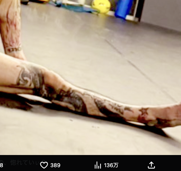 拡大 瓜田の長い生脚の刺青姿(@Reiko31869375)