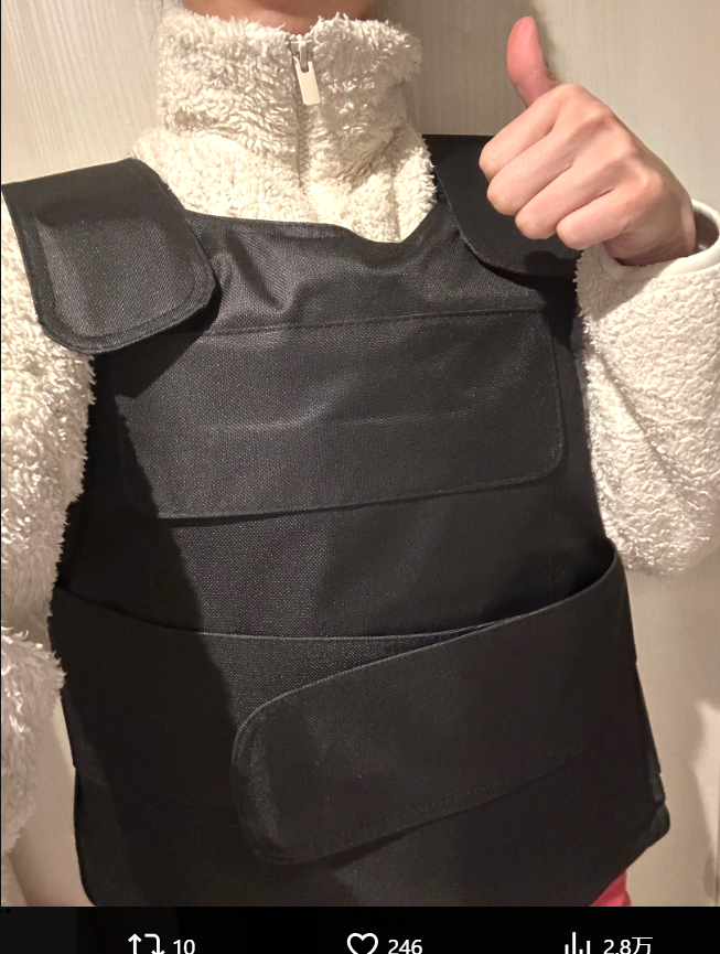 あきぴの防刃ベスト着用姿。これでロードワークをするという(@akipisabu)