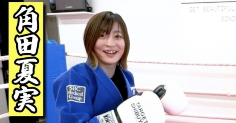 角田夏実が迫力あるパンチのミット打ちを披露した(『具志堅用高のネクストチャレンジ』サムネイルより)