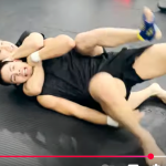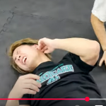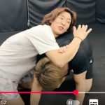 完璧にチョークが極まり、大野は苦悶の表情でタップ(『大野篤貴【武道空手 翠】』YouTubeチャンネル)