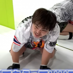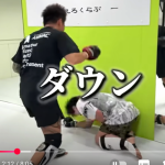 てる(右)は、RISEファイターの山口裕人(左)の左ボディでダウン(『てるくんの部屋』YouTubeチャンネル)