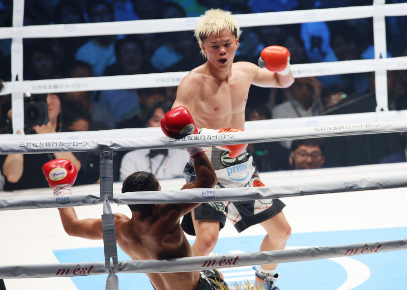 4戦目となった24年7月のジョナサン・ロドリゲス戦は、グレーにオレンジのラインのシューズ