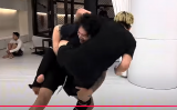 - 飯田は教わったタックルで朝倉に仕掛ける(『飯田将成』YouTubeチャンネル)
