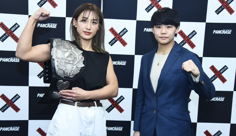 会見に出席した杉山しずか(左)と挑戦者の渡邉史佳(右)