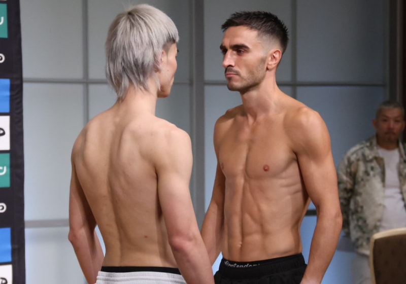 那須川(左)とモロニー(右)のフェイスオフ