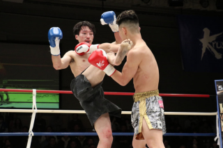 1R、どんどん前に出る昇也は圧をかけていくが、西京がカウンターのアッパーやフックをヒット。昇也はパンチからローで前に出るが、西京のカウンターが随所で当たる。終盤には、西京が左フックがクリーンヒット、パンチ連打を見せ、昇也が倒れるが、ゴングに救われる。