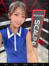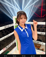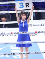 “うるうる瞳”のラウンドガールが再び登場!肩出しミニでポニーテール姿に「可愛すぎ、試合どころじゃなくなる」