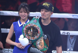 - 中谷潤人(右)防衛戦でもラウンドガールを務めた立華理莉(左)