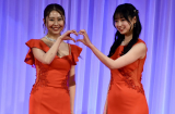 - 同じくKrushガールズの百田汐里(右)と笑顔のハートポーズ