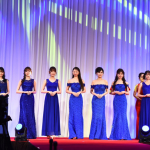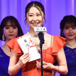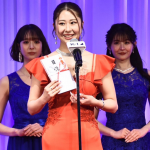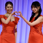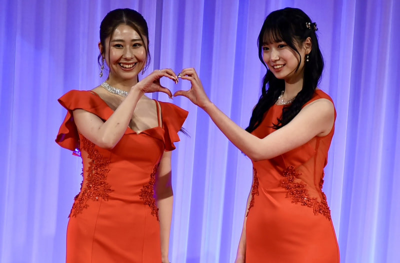 同じくKrushガールズの百田汐里(右)と笑顔のハートポーズ
