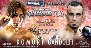 またライト級では、現GLADIATORライト級王者・小森真誉(ロータス世田谷)とナルエル・ガンドルフィ(チームラカイ)の国際戦も決定した。