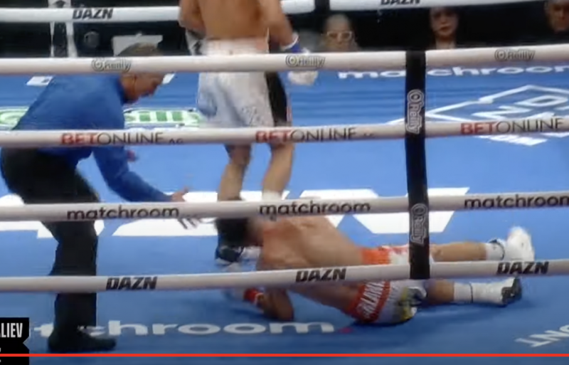 相手がダウン、KO勝利井上への王座挑戦獲得(c)DAZN