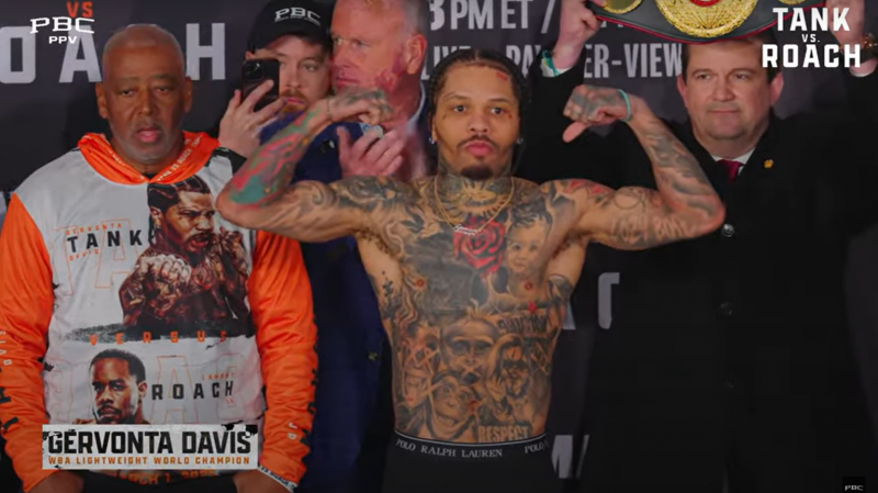 デービスも盛り上がった腕を見せつけ計量パス(Premier Boxing Champions Youtubeより)