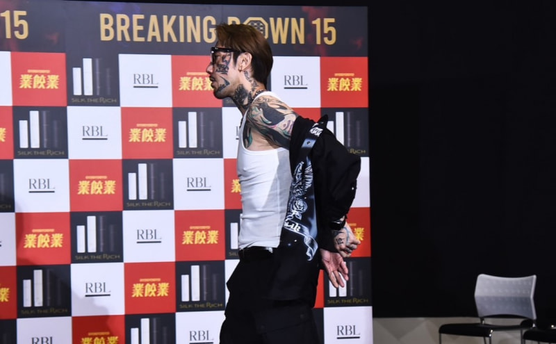 おもむろに上着を脱ぐ瓜田、肩と腕の刺青があらわに!