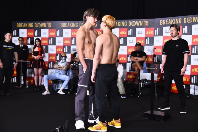 激しく睨み合う細川(左)と井原(右)