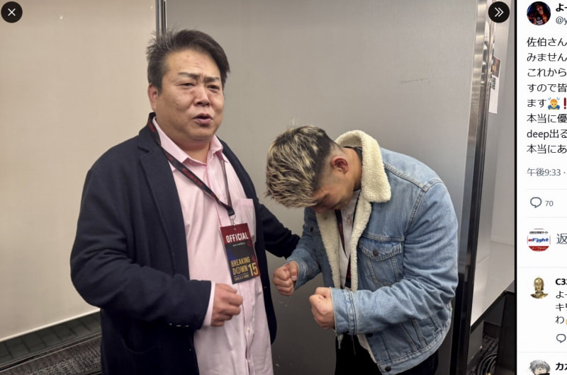試合後、佐伯氏に謝るよーでぃー @yodi_pretty