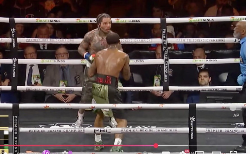 ジャッジのほうを見る(PremierBoxingChampions YouTubeより)
