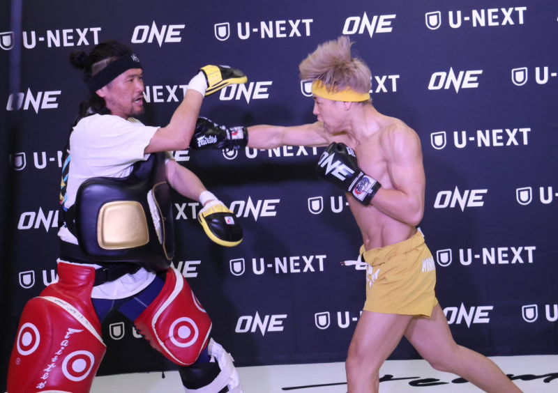 力強い右をミットに叩き込む