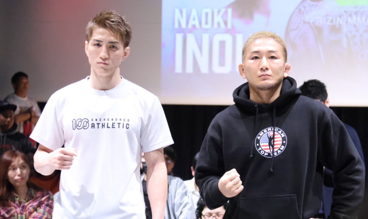 王者・井上直樹(左)と挑戦者・元谷友貴(右)が公開練習