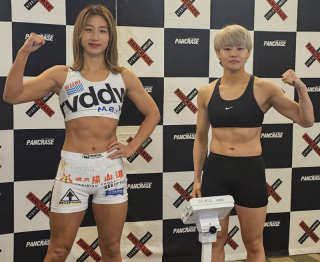 3月9日(日)神奈川・横浜武道館で開催される格闘技イベント『PANCRASE 352』の前日計量が8日、都内にて行われた。女子フライ級(-56.7 kg)王者の杉山しずか(リバーサルジム新宿Me,We)が56.45kgで計量パスし、見事に割れた腹筋でマッスルポーズ。挑戦者で同級1位の渡邉史佳(FIGHTER’S FLOW)は56.35kgでパスした。