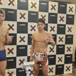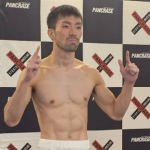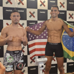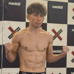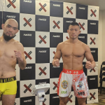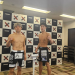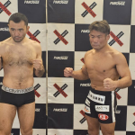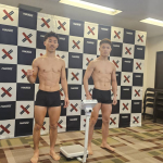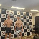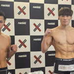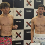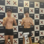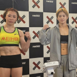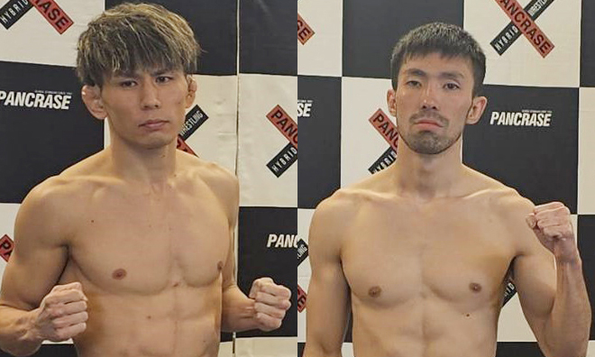 計量パスしたストロー級王者・黒澤(左)と挑戦者・植松(右)
