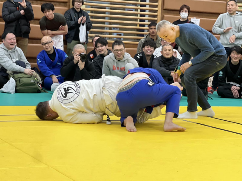 嶋田先生(左)が腕十字を仕掛ける ©トライフォース