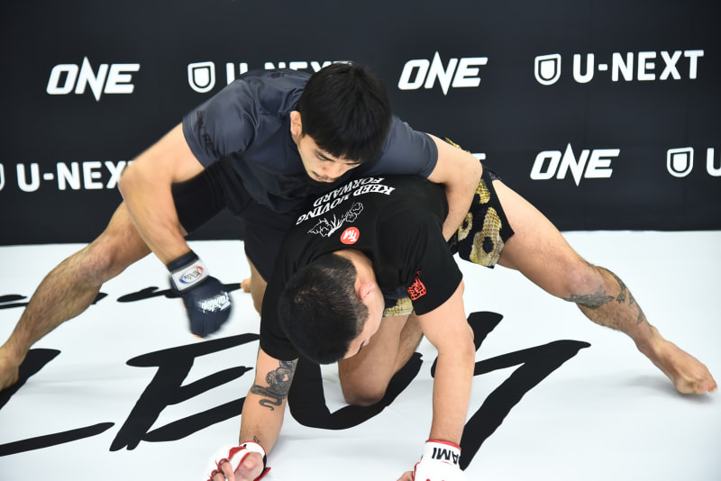 若松が抑え込みながらパウンドを打ち込む