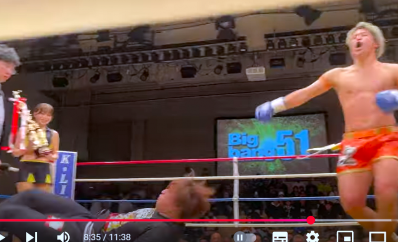 投げられた飯伏幸太の近くにいた水瀬は下がって激突を回避(ビッグバンオフィシャルYouTubeチャンネル)