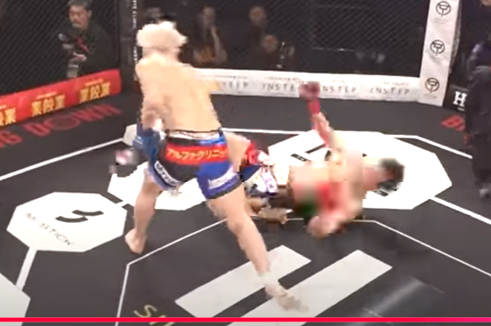 左足が完全に曲がってしまっている(『朝倉未来YouTubeチャンネル』)