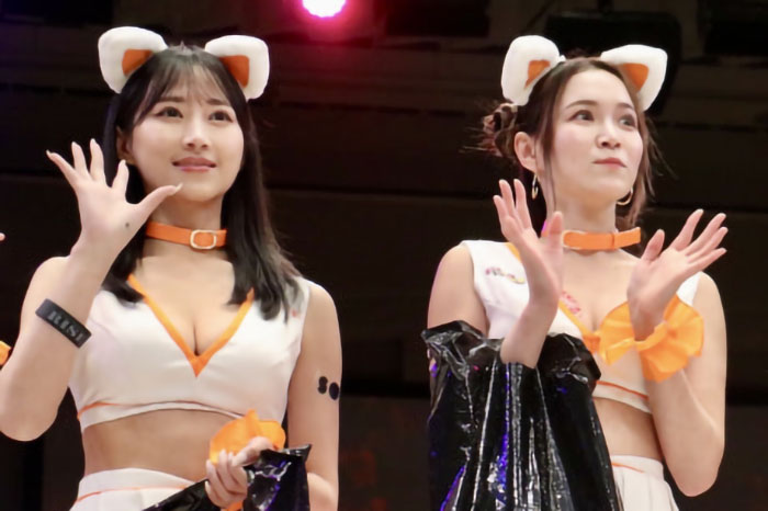 RISEラウンドガールで活躍する川瀬もえ(左)