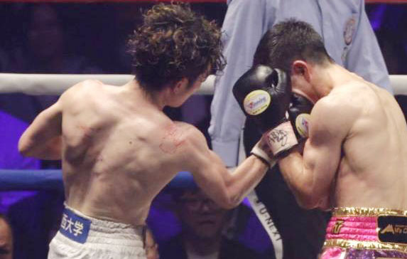 寺地のアッパーがユーリに食い込む