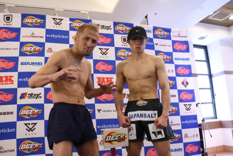 元DEEPライト級王者・中村(左)と五明(右)