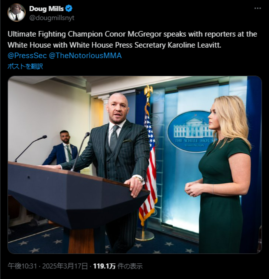 マクレガー(左)が記者からの質問に応じる(@dougmillsnytより)