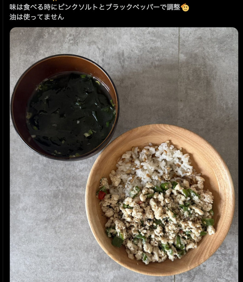 高橋の減量食、ガパオ風の鶏胸肉ライス(@rin_rin_t)より
