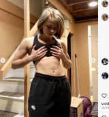 【フォト・動画】”見返り美人”が突如ムキムキ背中に変化!チラ見せ脚も脅威のマッスル